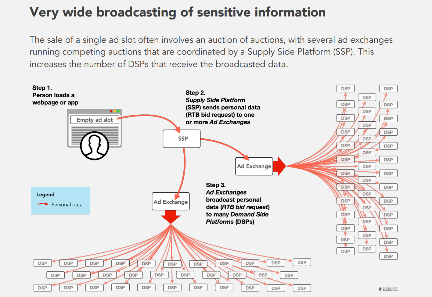 Der Privacy-Forscher und AdTech-Experte Wolfie Christl und sein Co-Autor Johnny Ryan schrieben im Auftrag der NGO Irish Council of Civil Liberties einen aufschlussreichen Bericht über die dramatischen Folgen der täglich verschickten Echtzeitauktionsdaten. Sie zeigen auf, wie der simple Aufruf einer Webseite einen unkontrollierten Datenhandel auslöst, der zu einer veritablen Sicherheitskrise für Europa ausgeartet ist.
