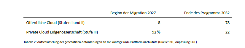 So schreibt die EFK: „Der Trend zeigt einen deutlichen Rückgang des Anteils des Hostings durch die Private Cloud des Bundes.“