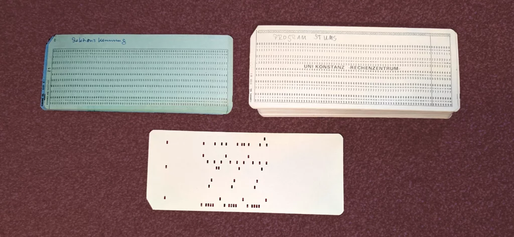 (Der Computer arbeitete immer nur ein Programm aufs Mal ab. Erst nach dem Ende eines Programmes konnte ein anderes gestartet werden. Ein Modus, der einigen vielleicht als Stapelverarbeitung, engl. Batch Processing bekannt ist.)